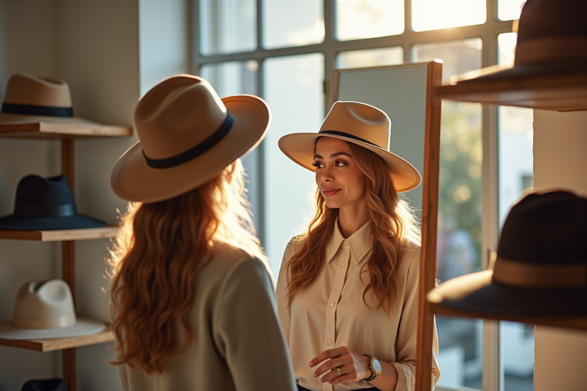 - Rien ne remplace un essai devant le miroir : c’est la seule manière de vérifier si la taille du chapeau épouse bien la forme du visage et procure ce confort discret tant recherché.